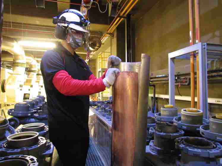 红龙扑克将废弃物转化成有效的工业或民生原物料,,,,图为废铜液淬炼后再制成纯度极高的铜管